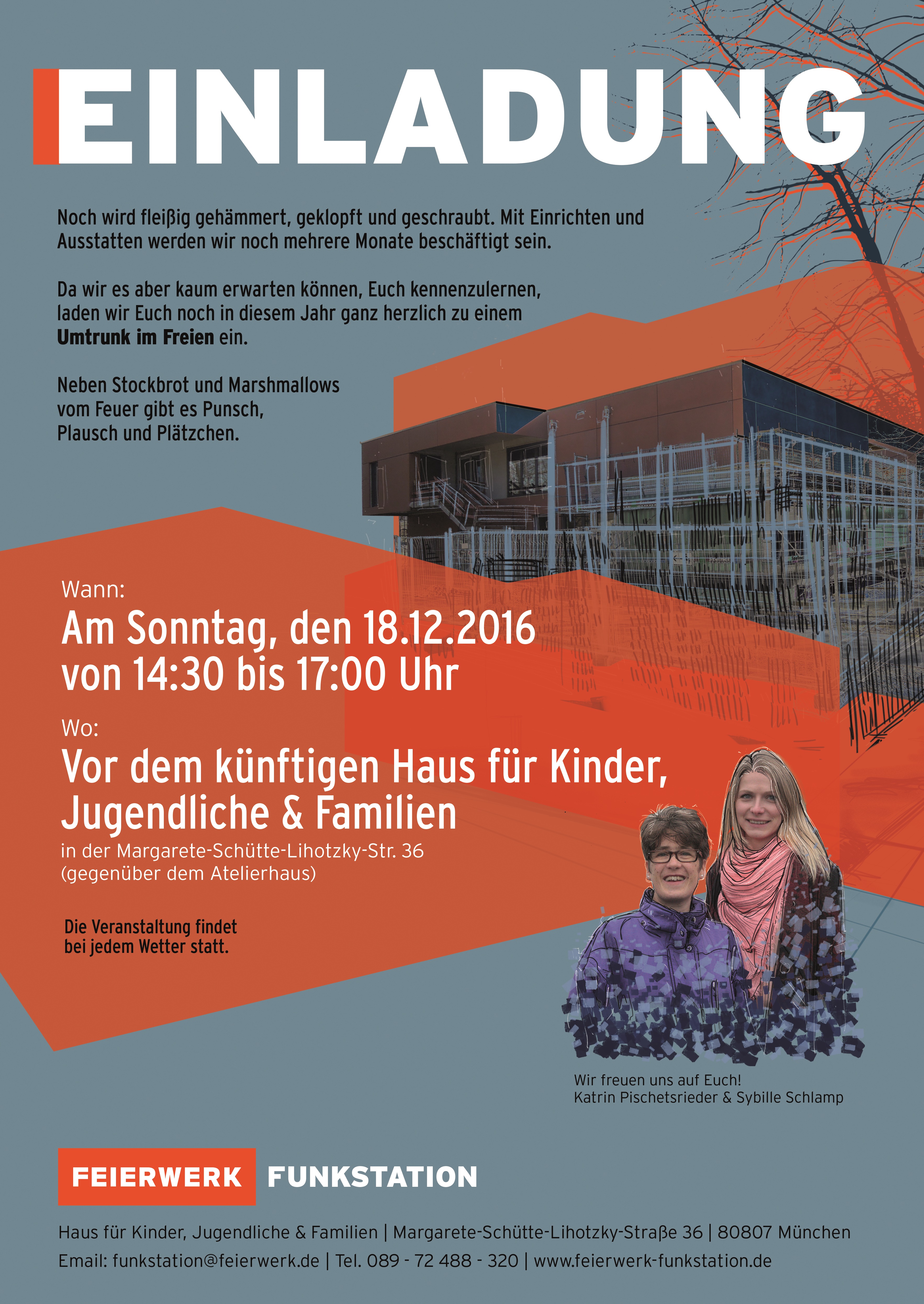 Feierwerk e.V. lädt ein! Es gibt Stockbrot und Marshmallows vom Feuer direkt auf der Baustelle. Wer möchte, kann sich im Anschluss noch bei Punsch, Plausch und Plätzchen im Nachbarschaftstreff (Max-Bill-Str. 35) aufwärmen.