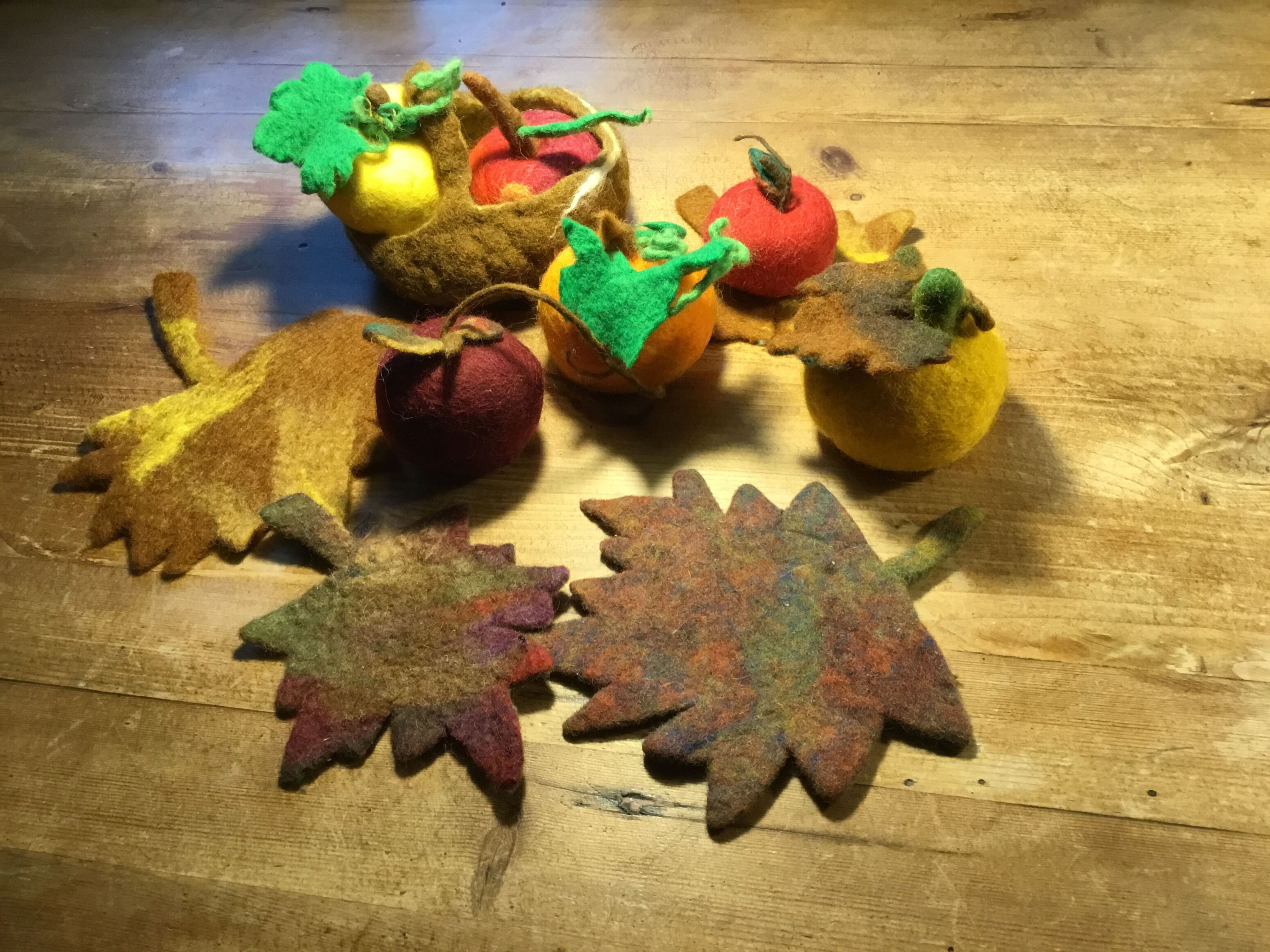 Gemeinsam mit euren Kindern könnt ihr Buntes für den Herbst gestalten. Eine Künstlerin zeigt euch, wie in Nassfilztechnik Äpfel, Eicheln, Herbstblätter und vieles mehr entstehen kann.