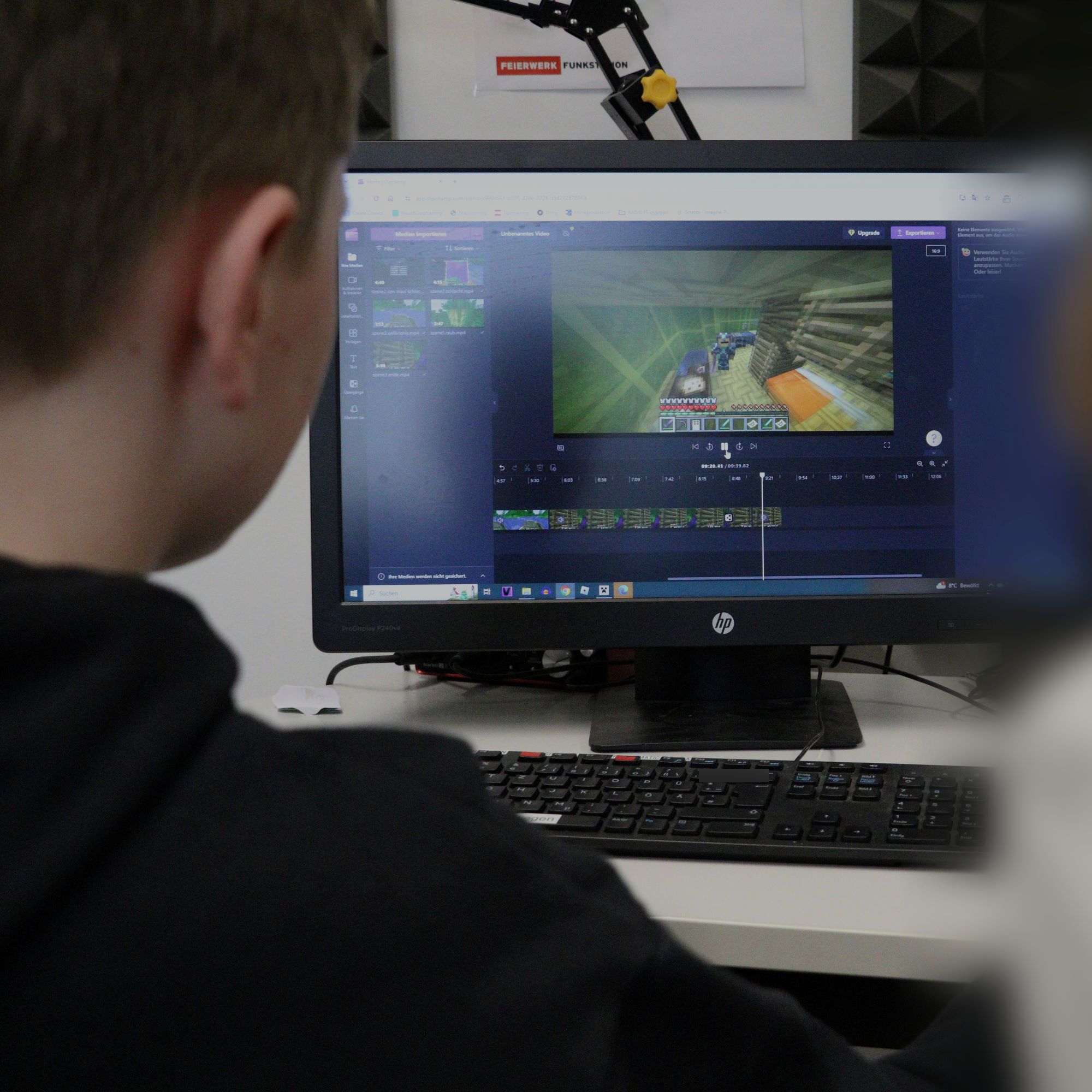 In diesem viertägigen Workshop lernt ihr das beliebte Videospiel von einer neuen Seite kennen. In Minecraft könnt ihr nicht nur stundenlang craften und bauen – das Spiel ist auch eine tolle Bühne für eure Geschichten. Neben den bekannten Spielfunktionen lernen wir Möglichkeiten kennen, mit Kamera und Perspektiven zu arbeiten, Videos aufzunehmen, Kulissen zu bauen und Clips zu schneiden und zu vertonen. Wir werden uns außerdem Geschichten ausdenken, Dialoge schreiben, Storyboards zeichnen … Neugierig geworden? Dann mach mit!