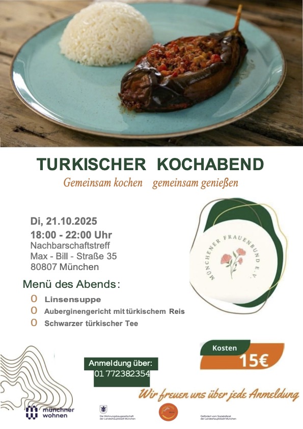 Ein neues Angebot in Domagkpark: Pro Quartal wird ein türkischer Kochabend stattfinden, mit Einführung in die türkische Küche und ein Menü wird gemeinsam gekocht.