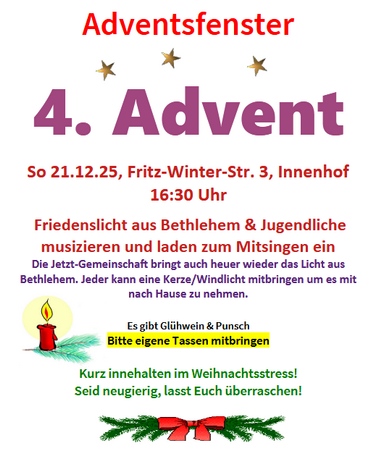 4. Advent > Friedenslicht 21.12., Fritz-Winter-Str. 3, 16:30 Uhr