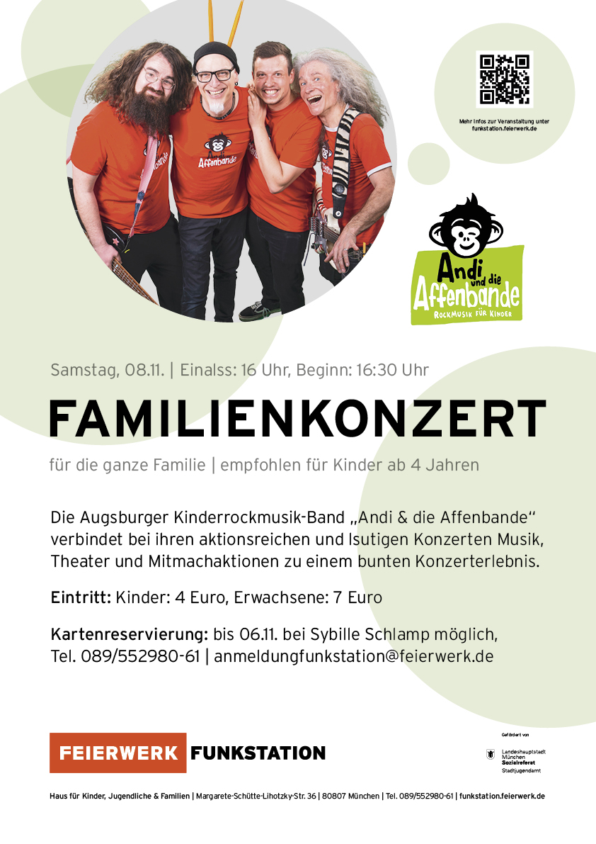 ANDI UND DIE AFFENBANDE verbinden bei ihren aktionsreichen, lustigen Konzerten Musik, Theater und Mitmachaktionen zu einem bunten Konzerterlebnis. Ob Gespenster im Kinderzimmer, Wackelzähne oder die Burg am Strand - die Affenbande trifft mit ihren Texten und Melodien das, was Kinder und Eltern bewegt.