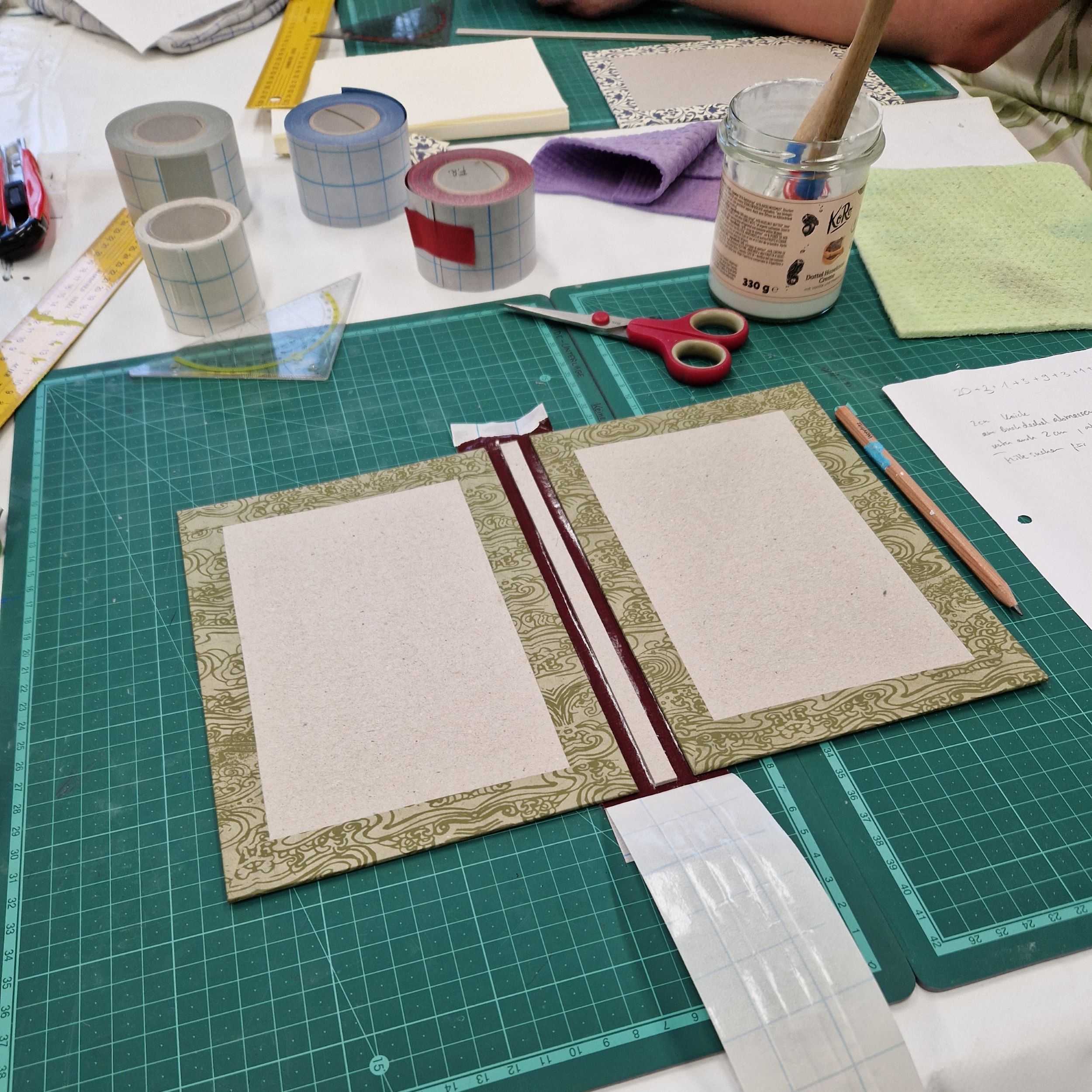 An diesem Werkstatttag lernt ihr die Grundkenntnisse der Buchbindetechnik kennen und stellt kleine Alben und Mappen her.