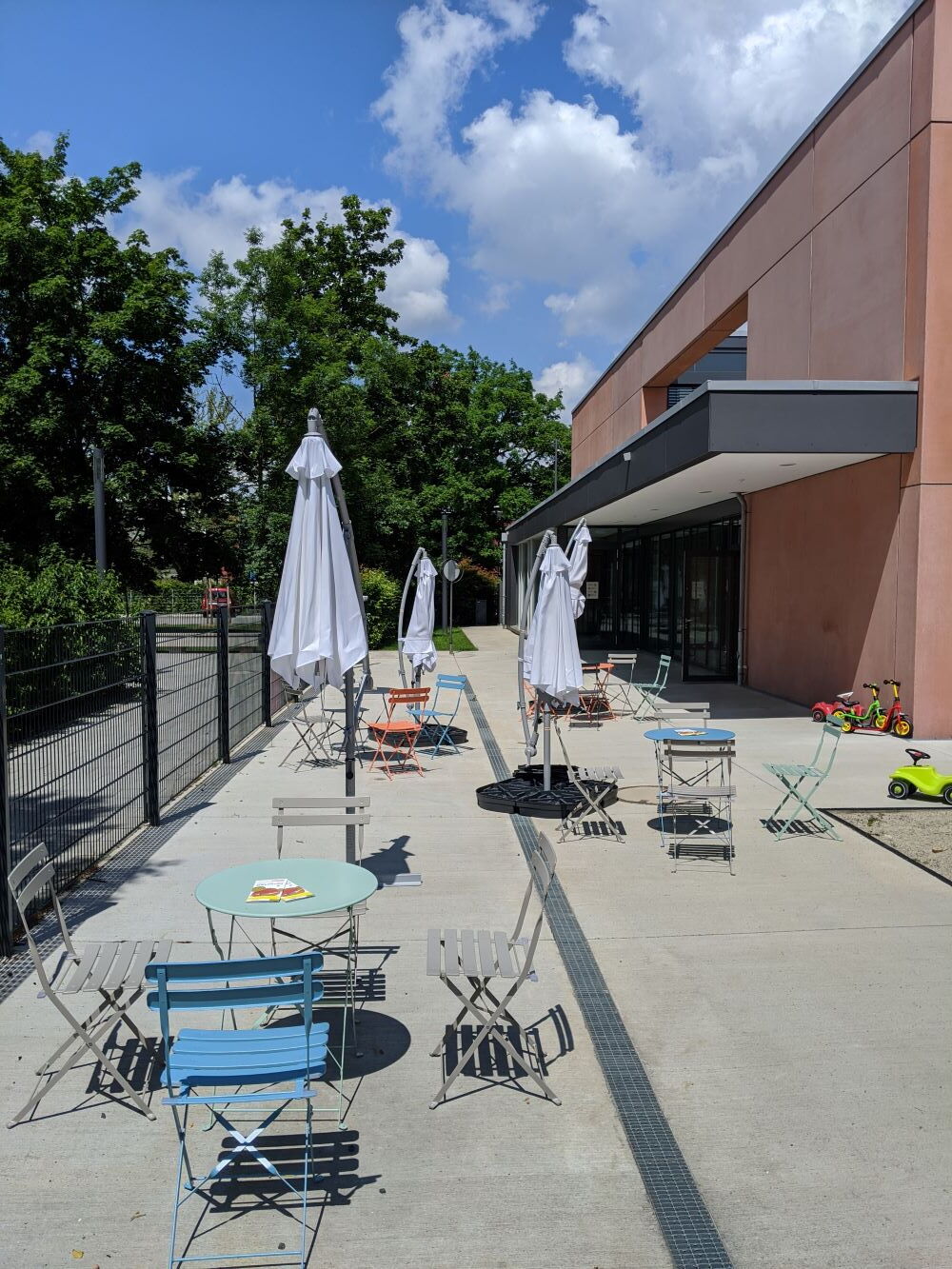 im Spielzimmer gegenüber spielen. Bei schönem Wetter ist